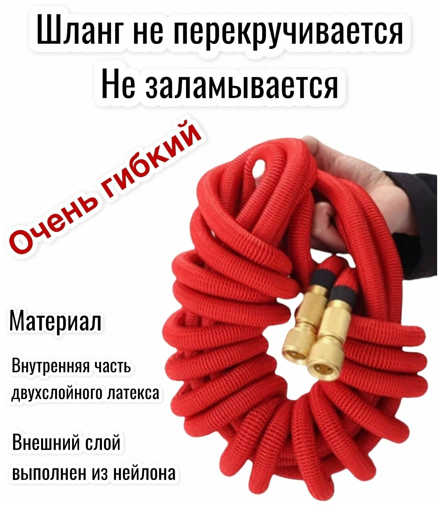 10 цен на Шланг садовый растягивающийся 37 метров для полива с распылителем, с металлическим соединениям D&V GROUP Красный