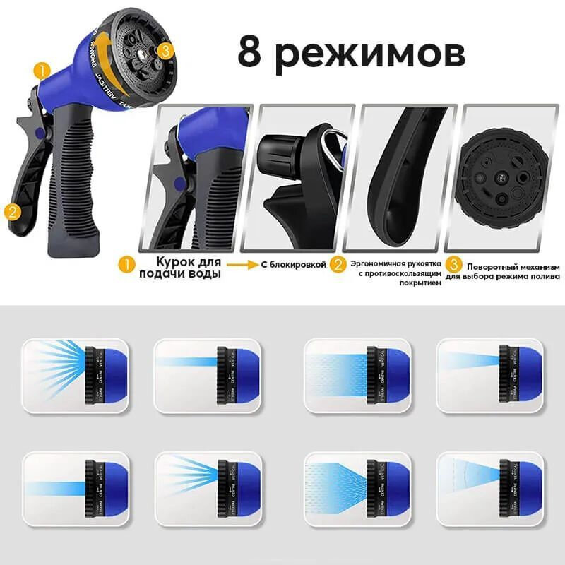 Шланг садовый растягивающийся для полива и мойки автомобиля