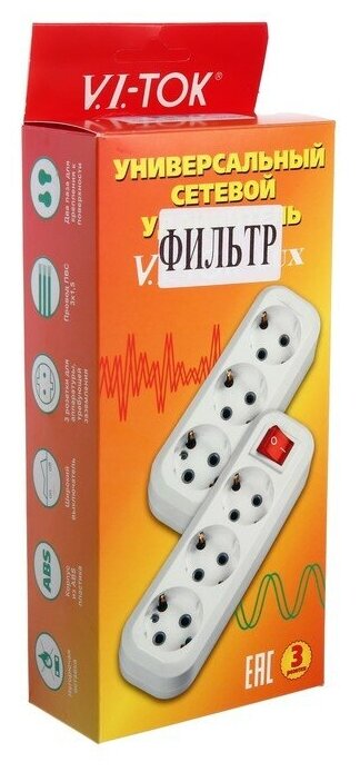 10 цен на Сетевой фильтр, 3 розетки, 16 А, длина 3 м VI-TOK