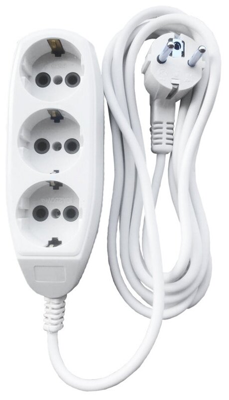 Сетевой удлинитель Джетт с заземлением 7м, 3 розетки, белый, россия