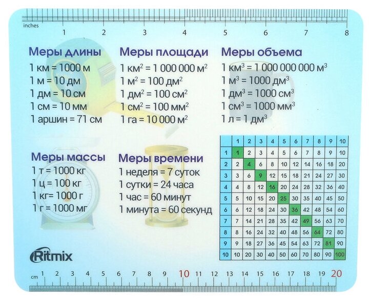 Коврик для мыши RITMIX MPD-020 Table, шпаргалка по математике, ПВХ/полипропилен, клейкая основа