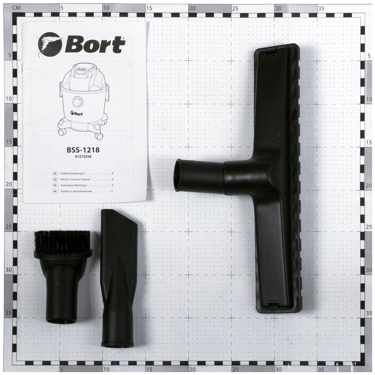 Bort Пылесосы строительные Bort BSS-1218 Пылесос строительный 91272256 1200 Вт, вместимость 18 л, 26,5 л/сек, 6,3 кг, набор аксессуаров 7 шт 8 032 ₽