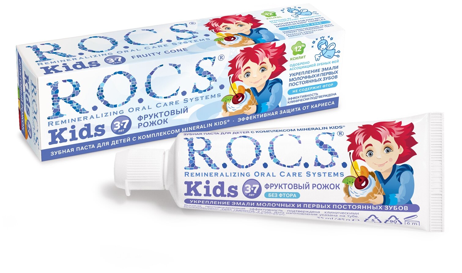 Зубная паста R.O.C.S. для детей, Фруктовый рожок, без фтора, 45 гр (03-01-017) информация: