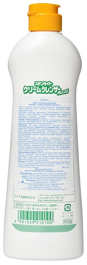 Kaneyo Кремообразное чистящее средство для кухни, апельсиновая свежесть, 400 г информация: