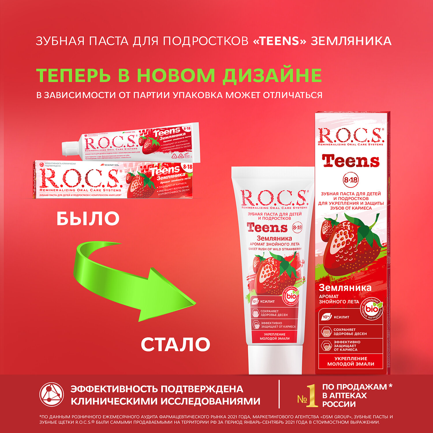 Зубная паста для школьников R.O.C.S. Teens Земляника - диарси центр