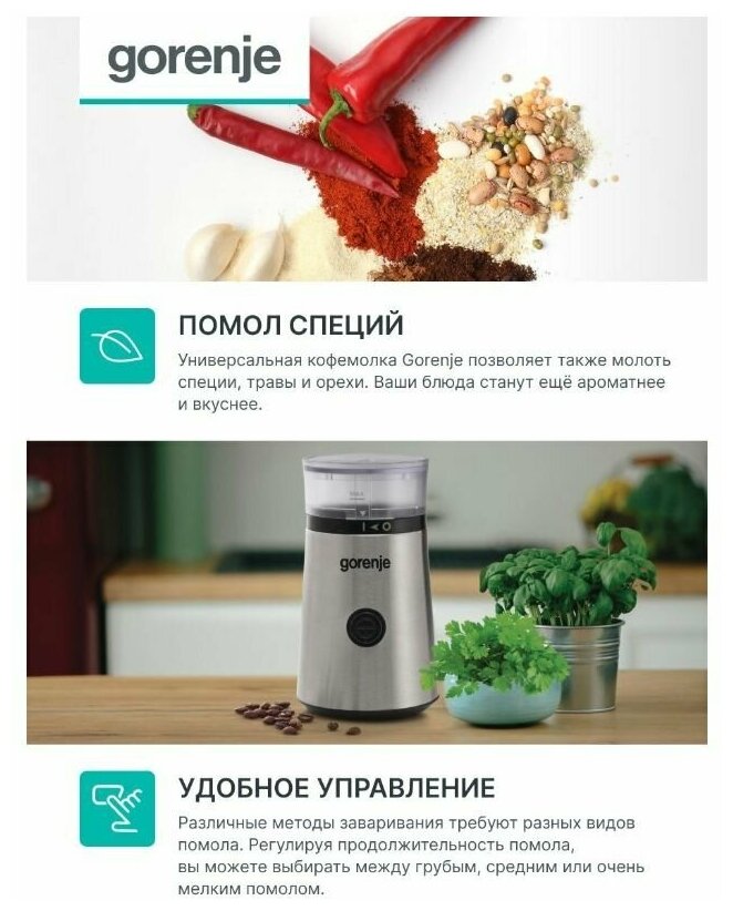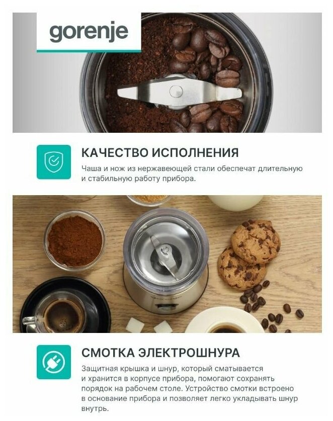 Отзывы на Gorenje Кофемолка Gorenje SMK150E, электрическая, ножевая, 150 Вт, 60 г, серебристая