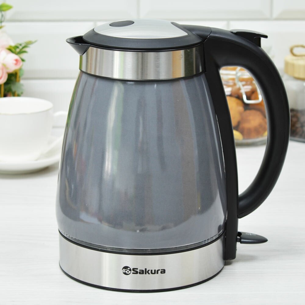 Sakura Чайник электрический SAKURA SA-2124S 1,2 л, 1800 Вт, черный/серебристый