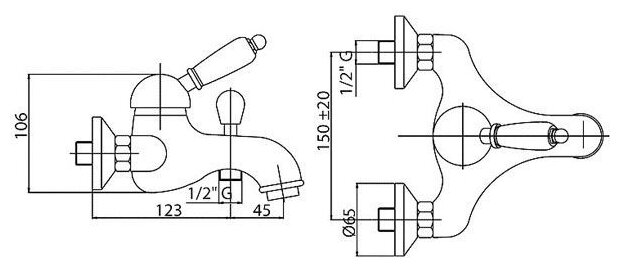 Смеситель на раковину настенный Эверест B46-350 с круглым поворотным изливом, кран-буксы 1/2", хром