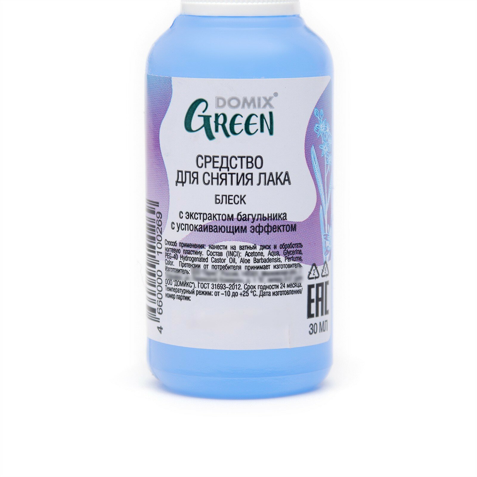 Средство для снятия лака Domix Green "Блеск" с экстрактом багульника, 30 мл информация: