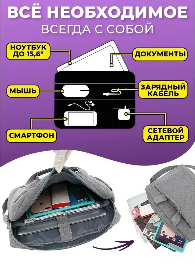 Сумка для ноутбука до 15,6 дюймов, чехол под ноутбук, макбук (Macbook), ультрабук, размер 40-28-7 см, серый информация: