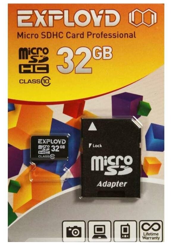 32 GB micro SD Class 10+SD adapter EXPLOYD 1 008 ₽