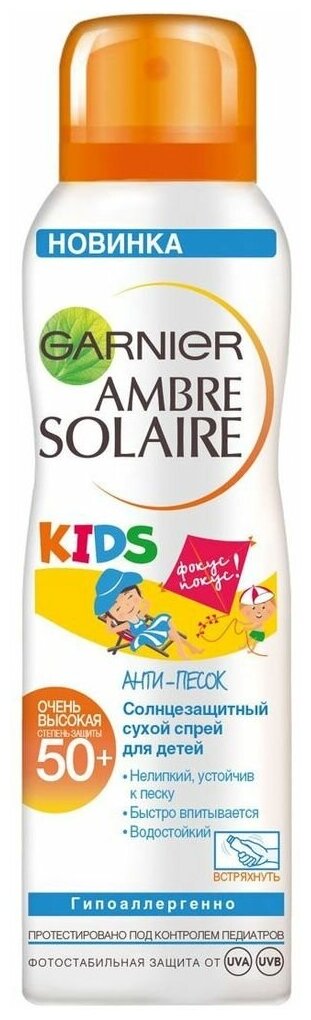 GARNIER Ambre Solaire детский солнцезащитный сухой спрей Анти-Песок Эксперт Защита SPF 50 200 мл информация: