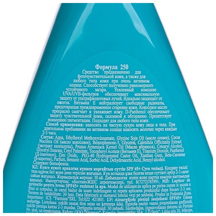 Молочко-спрей для загара солнцезащитное SPF45+ Floresan/Флоресан 160мл 222 ₽