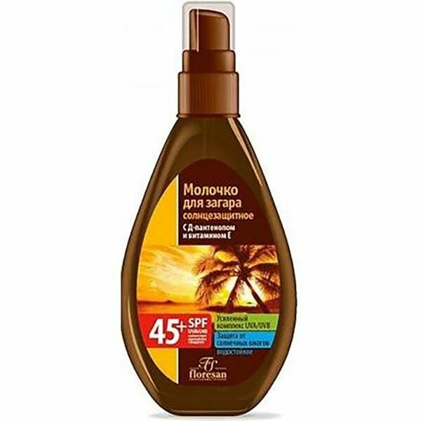 Floresan Солнцезащитное молочко для загара, водостойкое, SPF 45+, 160 мл