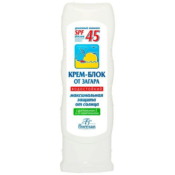 Отзывы на Крем солнцезащитный Флоресан " Крем-блок от загара" водостойкий 125 мл SPF 45 101113/Ф-113