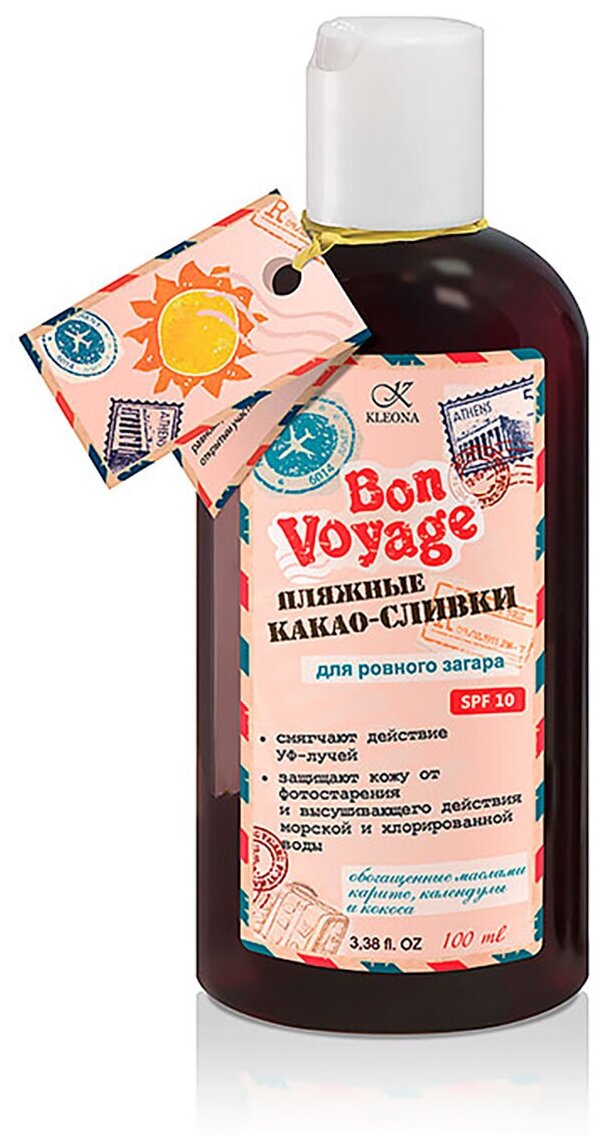 10 цен на Kleona Пляжные какао-сливки для ровного загара Bon Voyage SPF 10 100 мл