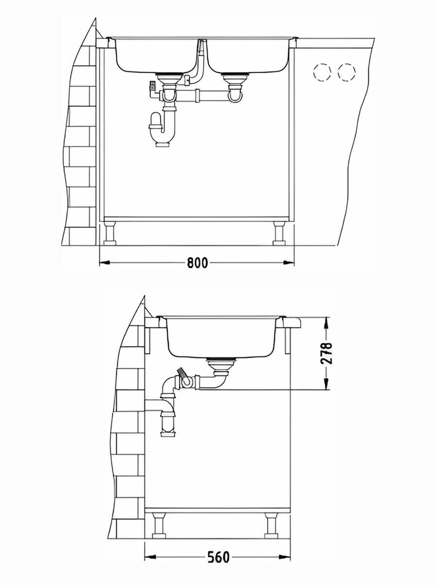 Кухонная мойка Alveus LINE 90 NAT 90 790X500 2X с сифоном 1130555 (1066751) 12 065 ₽