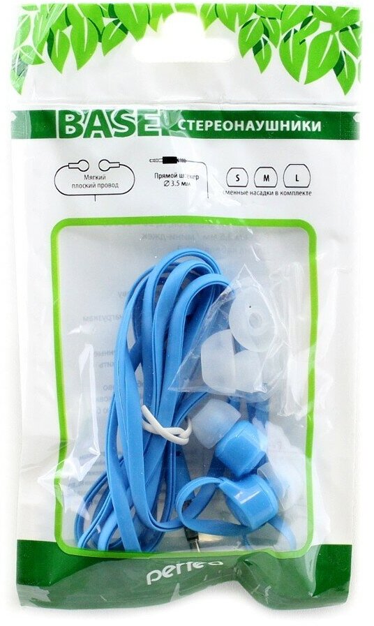 Perfeo наушники вакуумные BASE, плоский провод 1.2 м, голубые, Jack 3.5 (PF-BAS-BLUE/ AZR)/PF_B4202