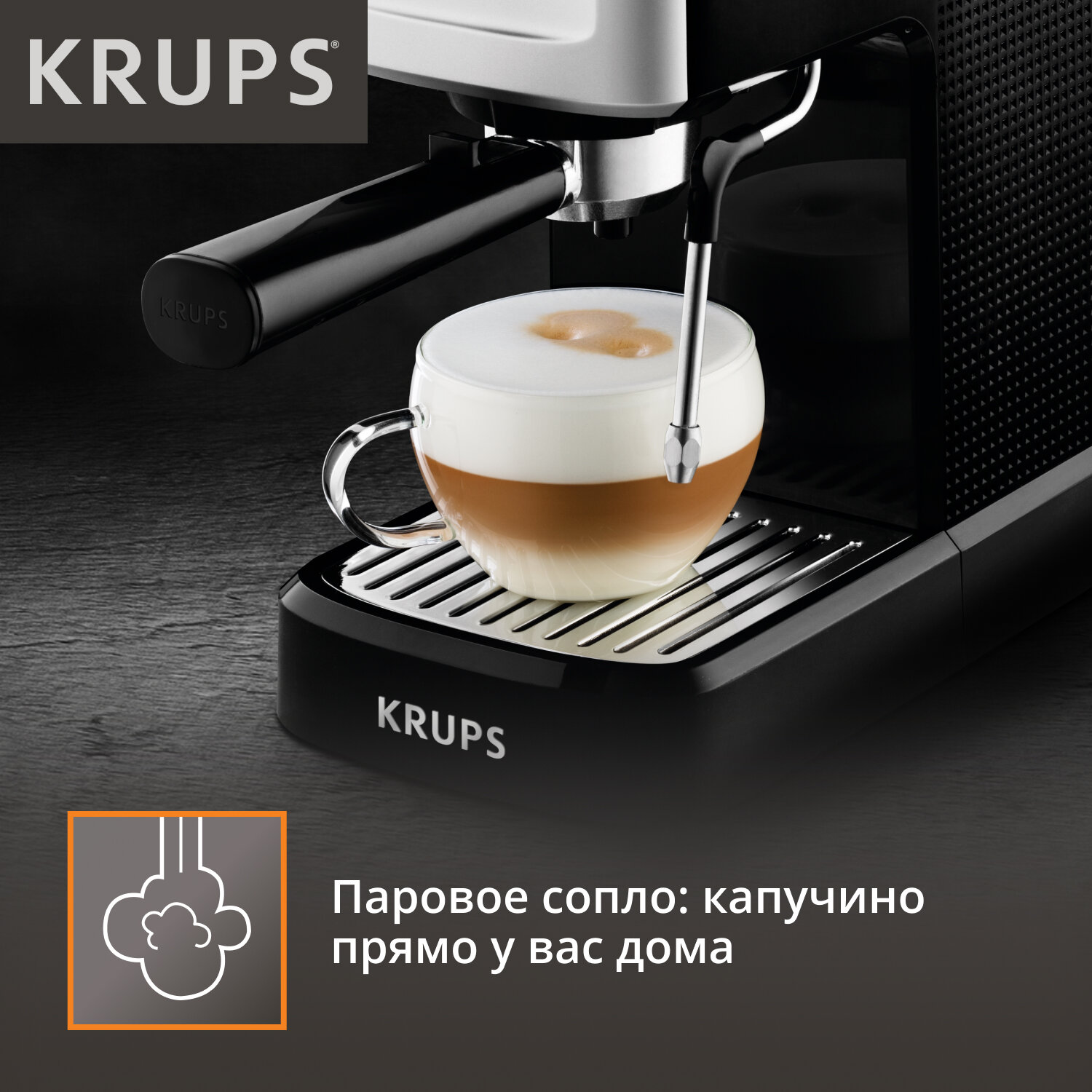 10 цен на Кофеварка рожковая Krups Calvi XP344010, серебристая/черная