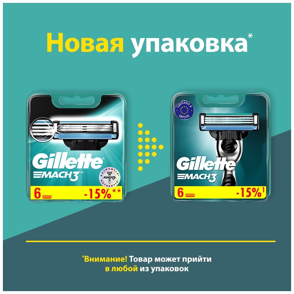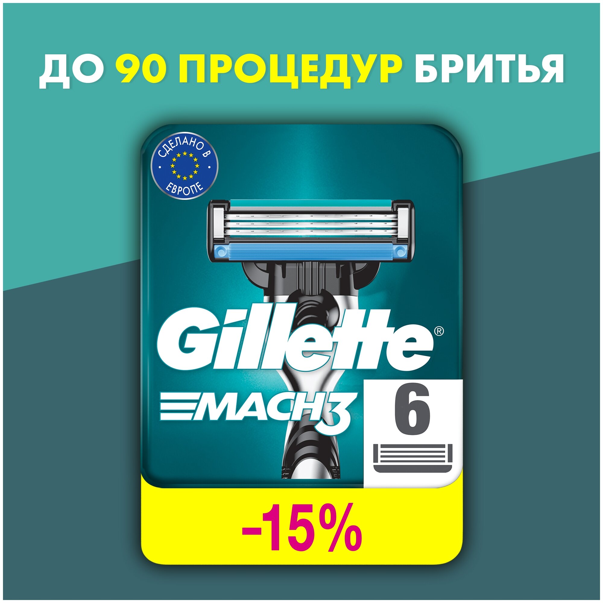 GILLETTE Mach 3 Сменные кассеты для бритья с 3 лезвиями, мужские, 6 шт