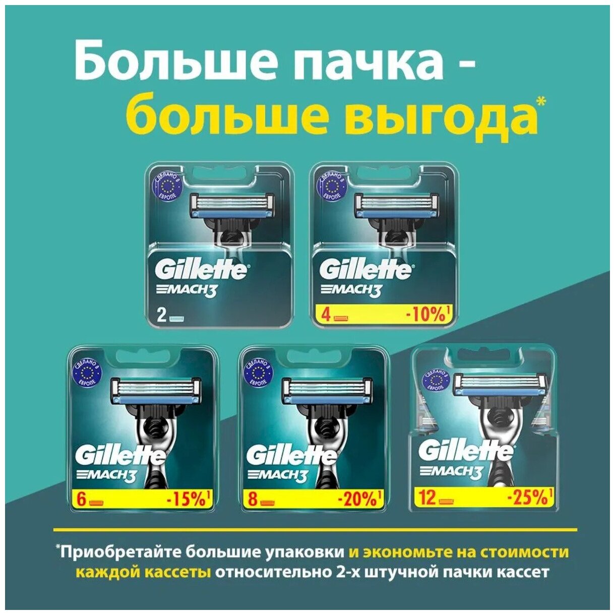Gillette Сменные кассеты для бритья Mach3, с 3 лезвиями, прочнее, чем сталь, для точного бритья, 4 шт. - 3 шт 5 205 ₽