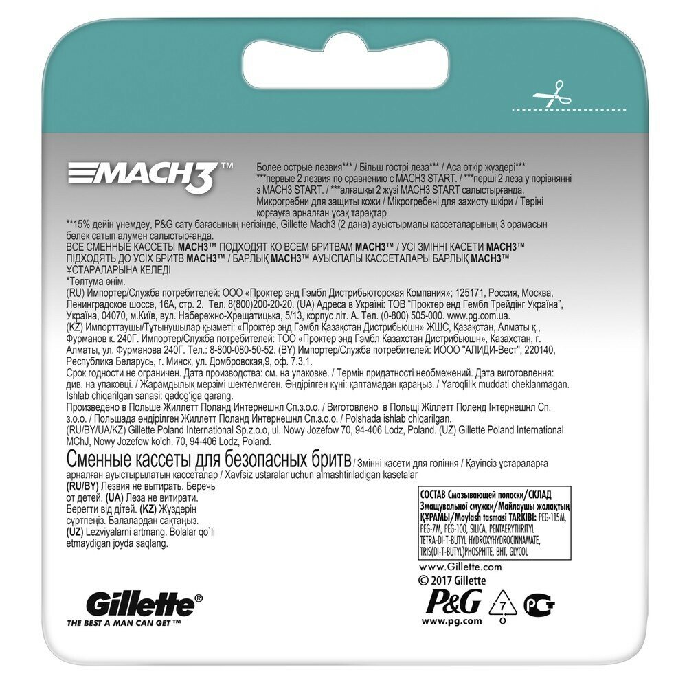 GILLETTE Mach 3 Сменные кассеты для бритья с 3 лезвиями, мужские, 2 шт