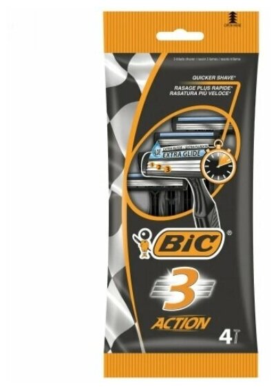 Одноразовая бритва Bic Action, 3 лезвия, 4 шт