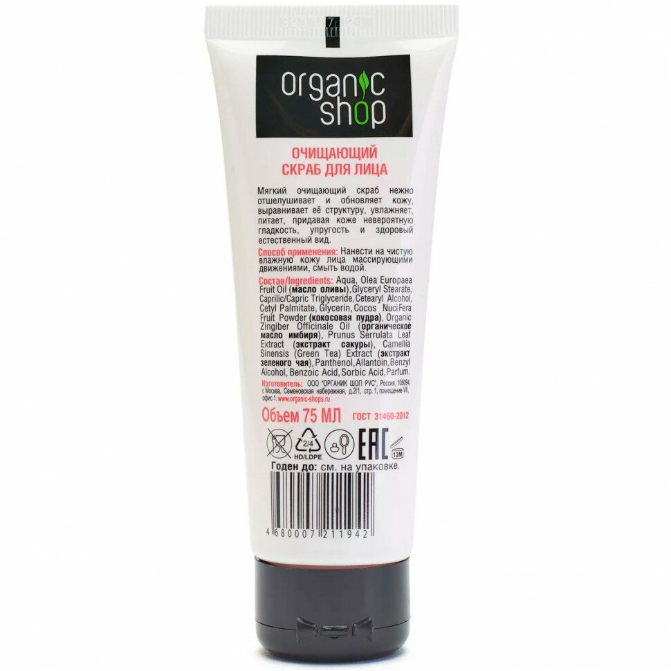 Скраб для лица очищающий Органик Шоп "Имбирная сакура" для всех типов кожи 75 мл информация: