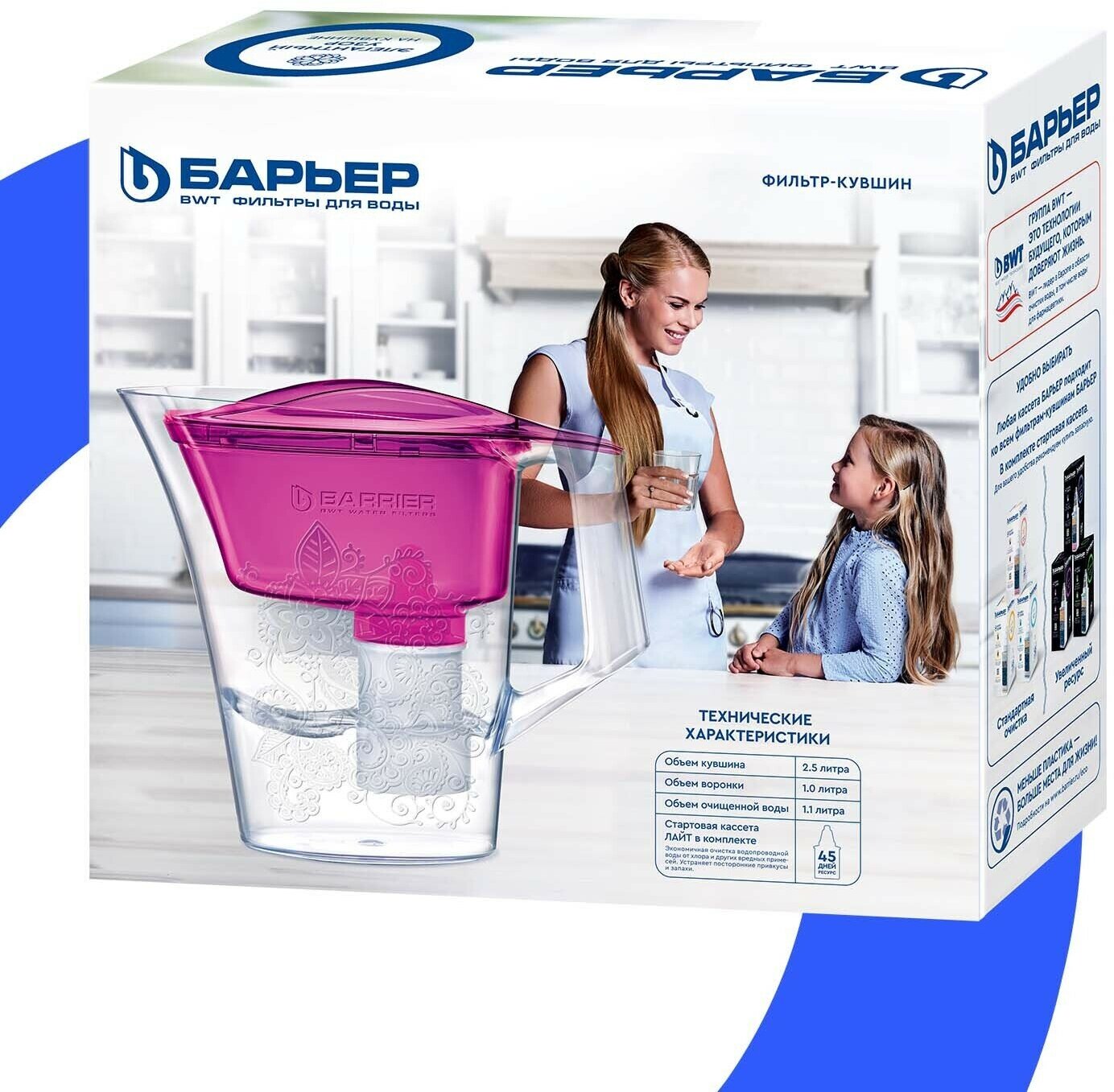Фильтр кувшин для воды 2.5Л узкий С рисунком танго пурп БАРЬЕР