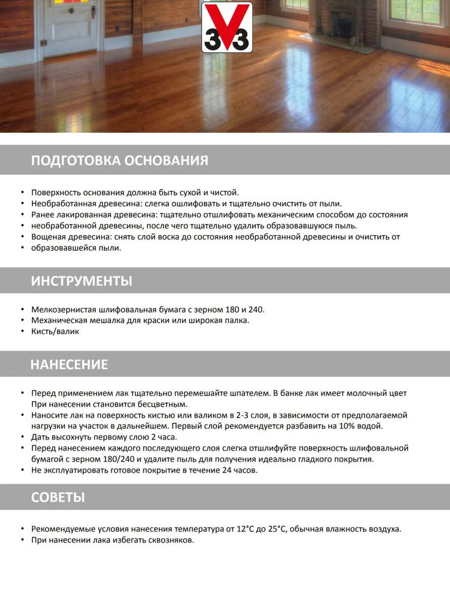 Лак паркетный V33 "Eco Protect", полуглянцевый, цвет: бесцветный, 2,5 л