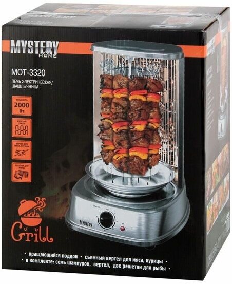 10 цен на Шашлычница электрическая Mystery MOT-3320 2000 Вт, 7 шампуров, серебристый