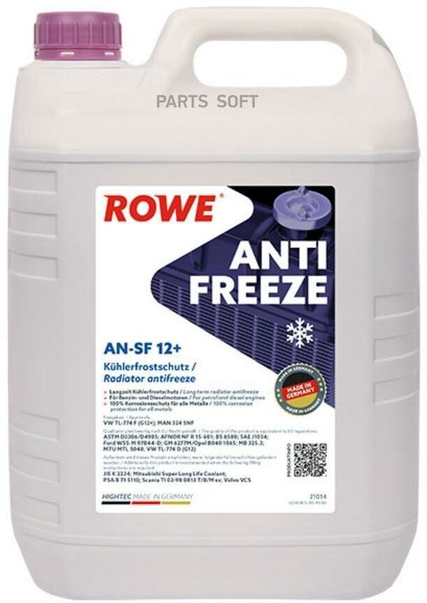 Антифриз Rowe Hightec Antifreeze An G12+ (20Л) Astm D3306/D4985 Afnor Nf R 15-601 Bs 6580 Sae J1034 Deutz Dqc Cb-14 Ford Wss-...