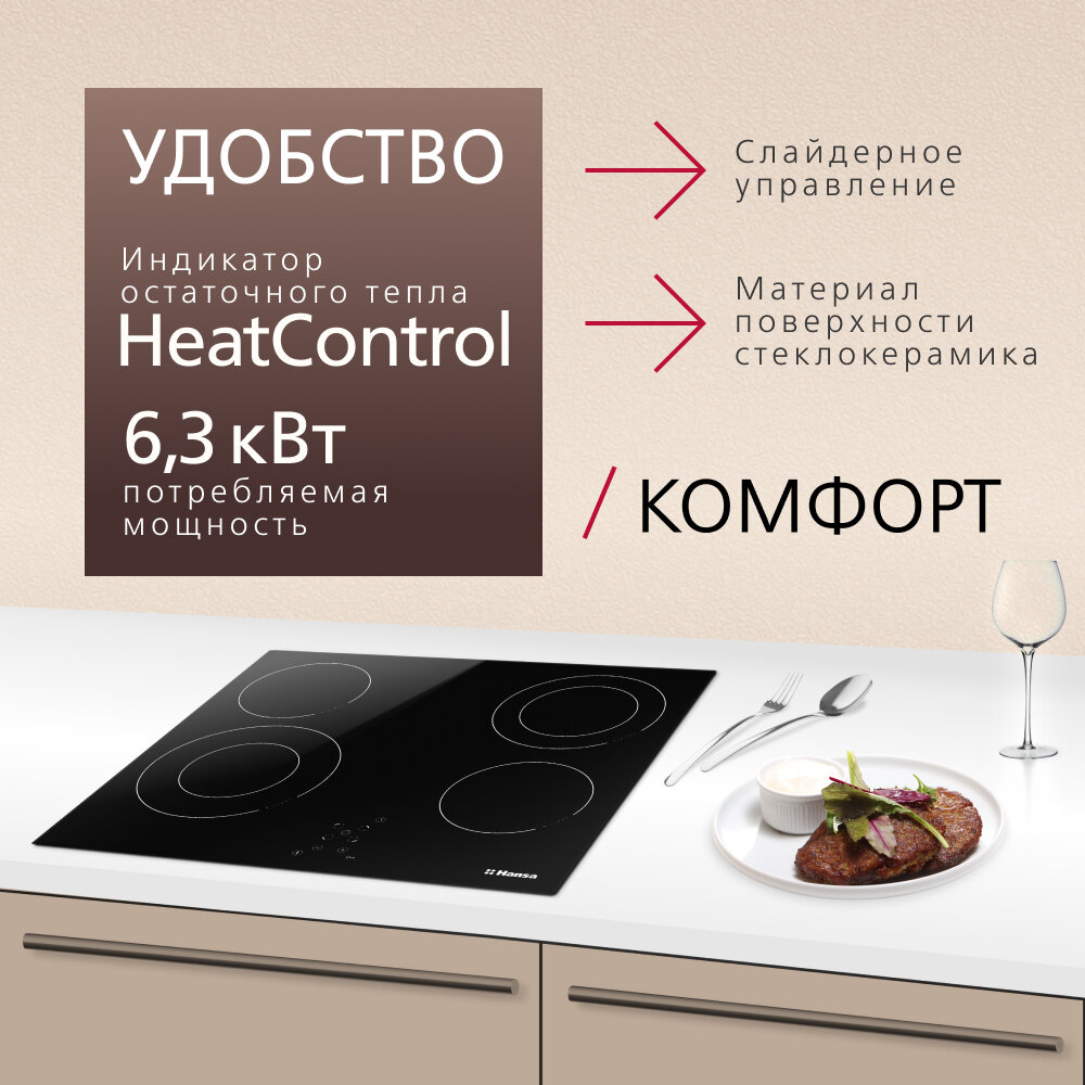 Электрическая варочная панель Hansa BHC66506, встраиваемая, 60 см, автоматика закипания, таймер автоматического отключения, стеклокерамика с сенсорным управлением 27 490 ₽