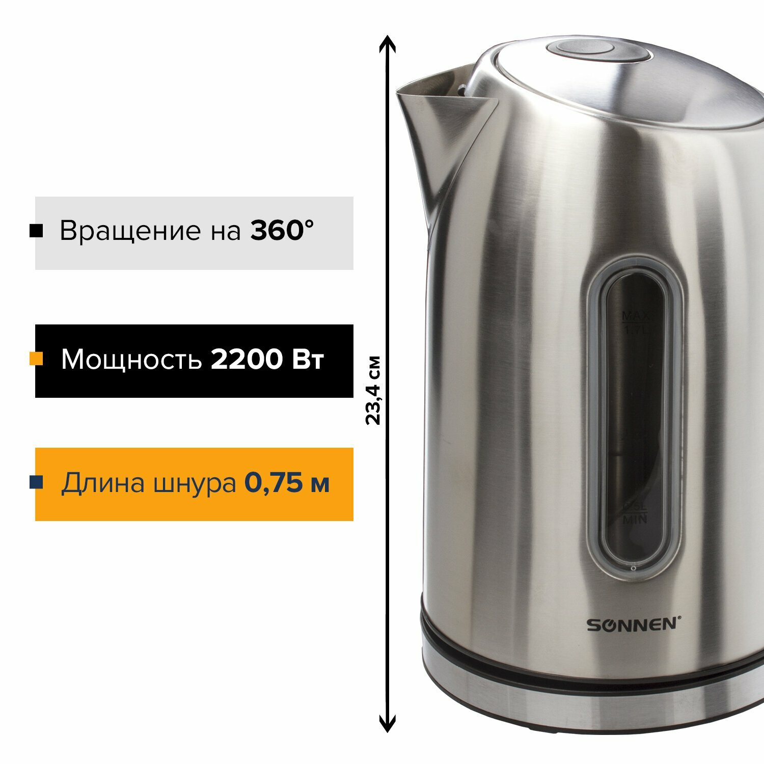 Электрочайник SONNEN KT-1740, stainless steel