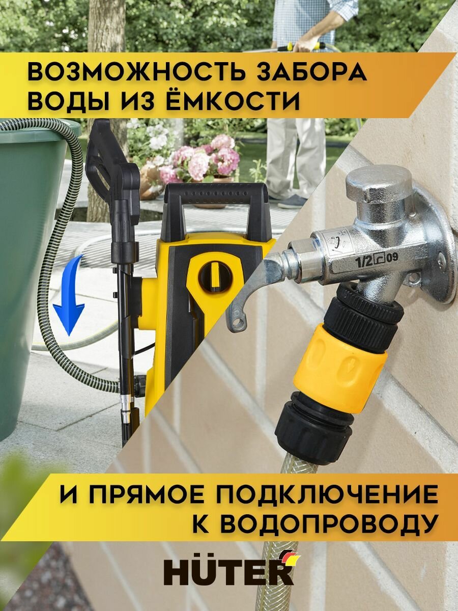 Мойка высокого давления HUTER W105-Р (1400 Вт, 105 Бар, 342 л/ч, шланг – 5 м, подача воды: водопровод/емкость, 6.6 кг) 6 390 ₽