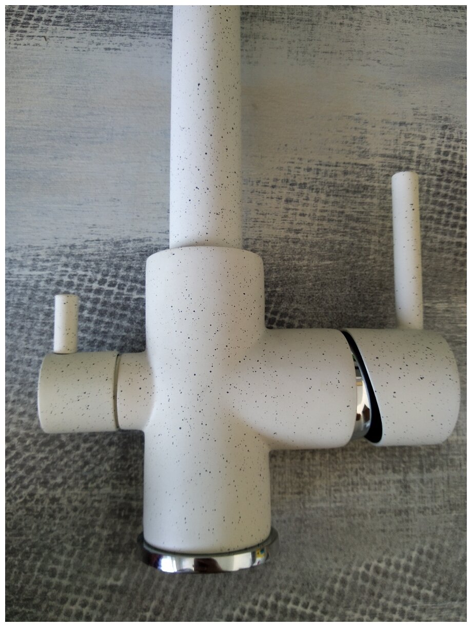Смеситель для кухни со встроенным краном под фильтр питьевой воды Ledeme R L4055W-3 белый гранит