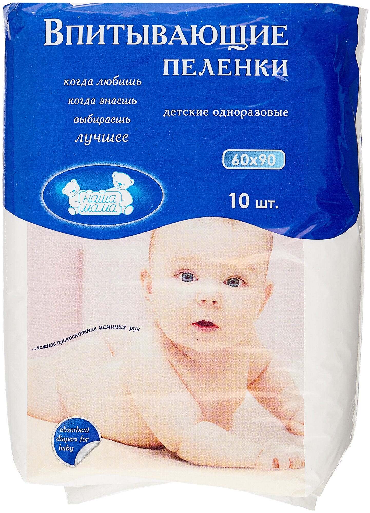 Наша мама Впитывающие одноразовые пеленки для детей, 60Х90 см, 10 шт, наша мама
