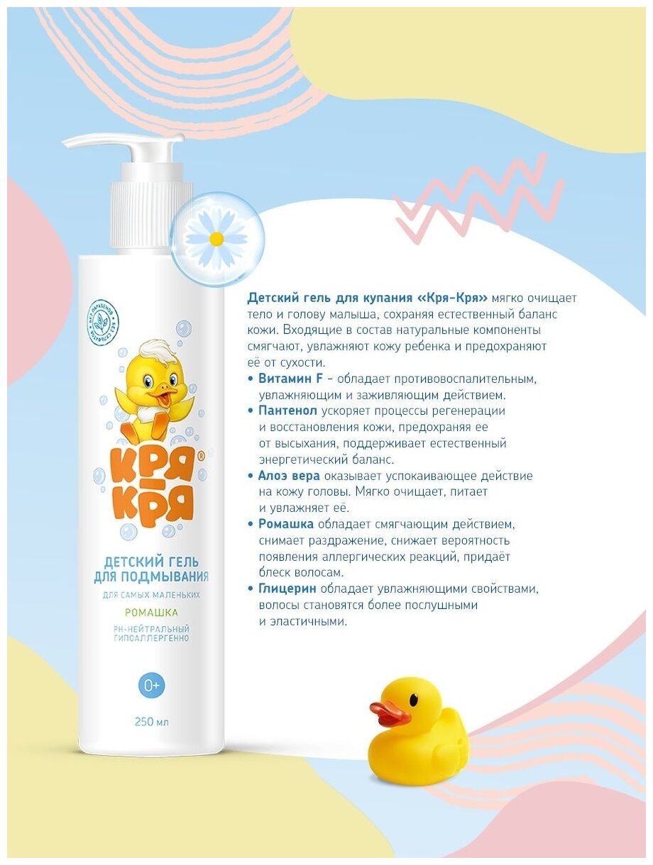 Детский гель для самых маленьких Кря-Кря, ромашка, 250мл информация: