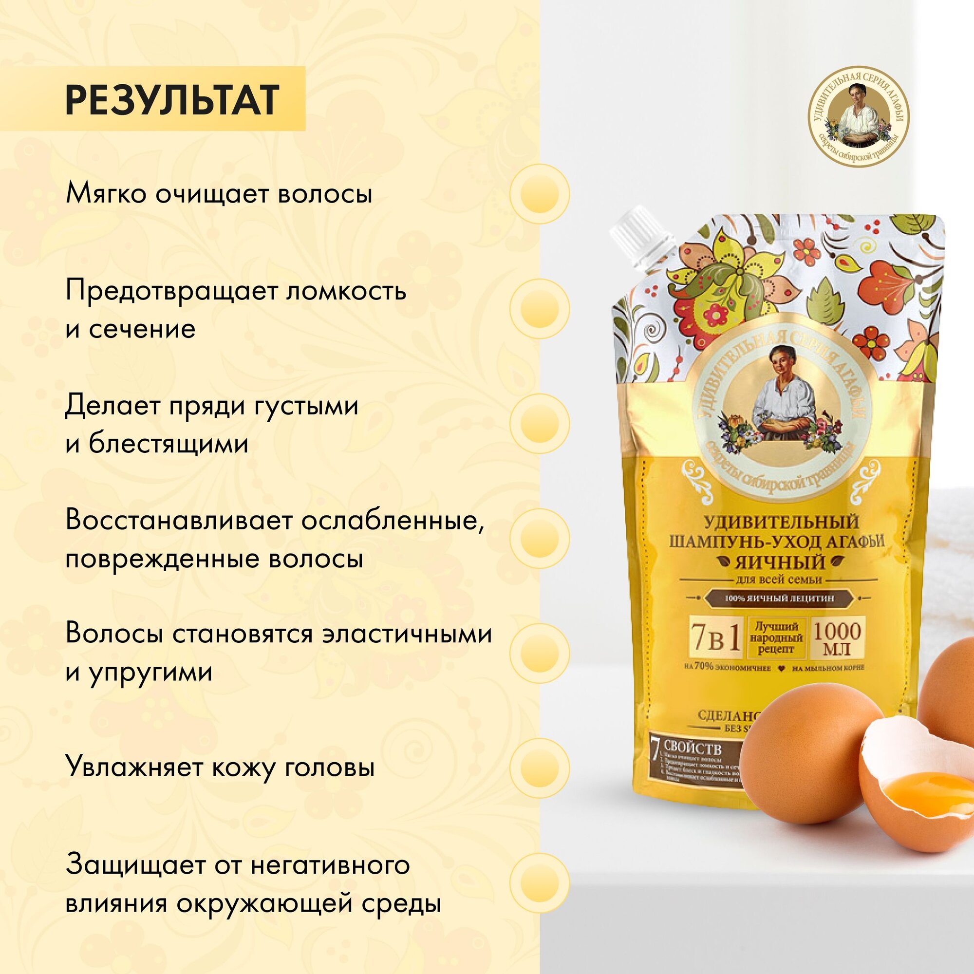 Шампунь Удивительная Серия Агафьи "Яичный", 7 свойств, дой-пак, 500 мл