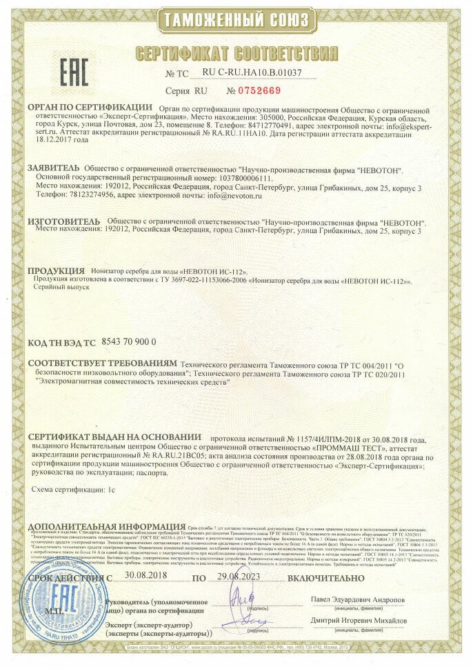 Ионизатор серебра для воды "невотон ИС-112" информация: