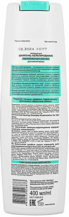 Витэкс Обогащенный Шампунь-кератирование оздоравливающего действия Pharmacos Dead Sea, для сияния волос, 400 мл, 3 шт