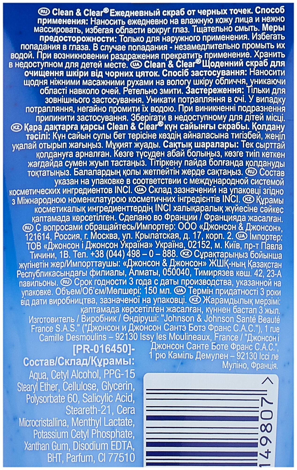 Ежедневный скраб Clean&Clear от черных точек,150 мл . информация: