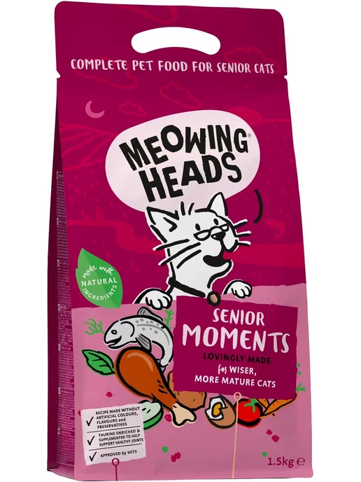 Meowing Heads Senior Moments - Сухой корм для кошек старше 7 лет с лососем и яйцом "Мудрые года" (1,5 кг)