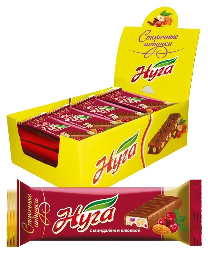 10 цен на Батончик, "Стильные штучки", в шоколадной глазури, нуга с миндалём и клюквой, 60г 12 шт