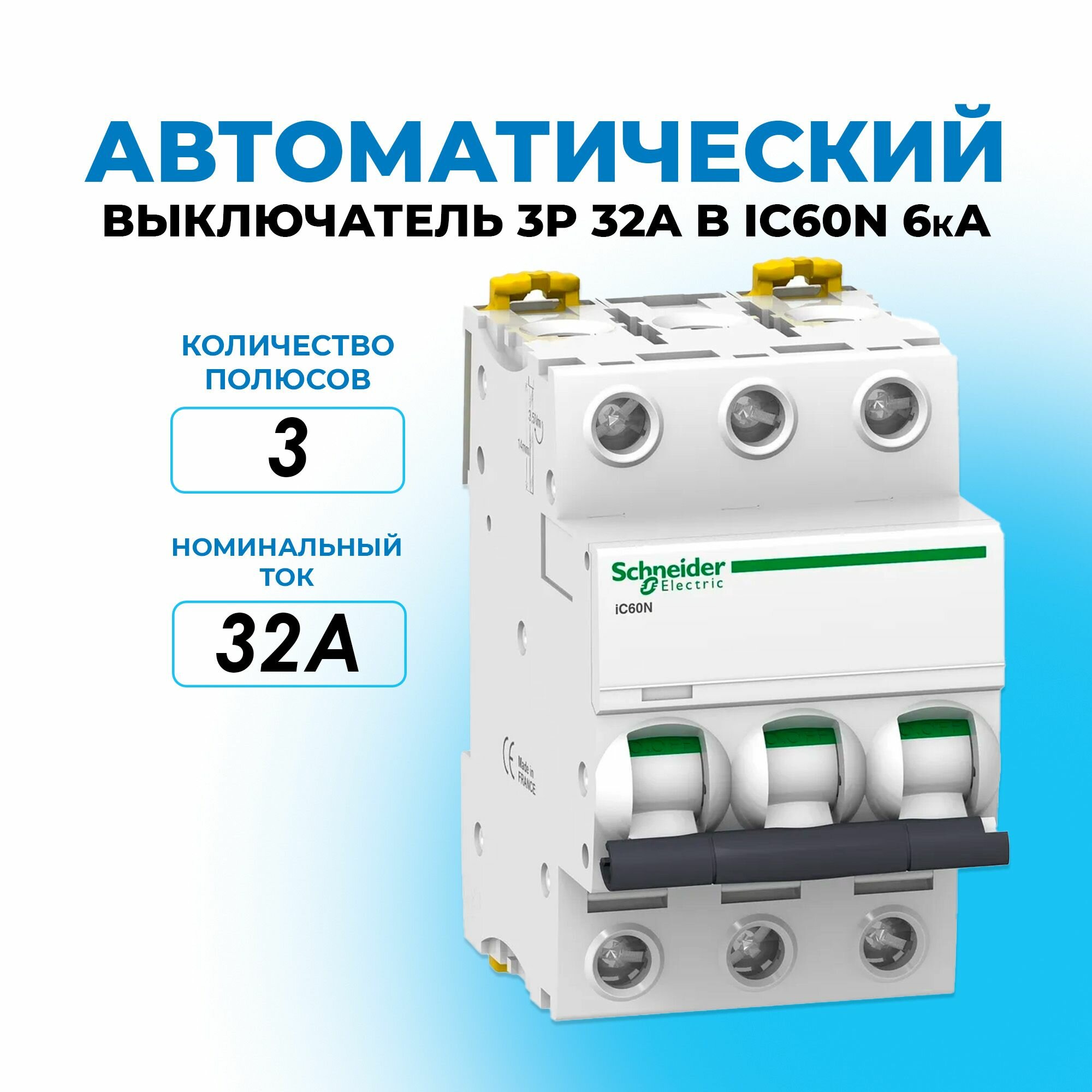 Автоматический выключатель Schneider Electric Acti9 iC60N, 3 полюса, 32A, тип B, 6kA информация:
