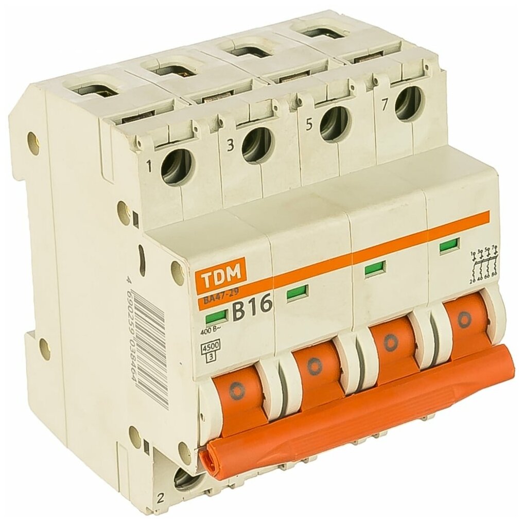 Автоматический выключатель TDM Electric ВА47-29 4Р 16А 4,5кА х-ка В . информация: