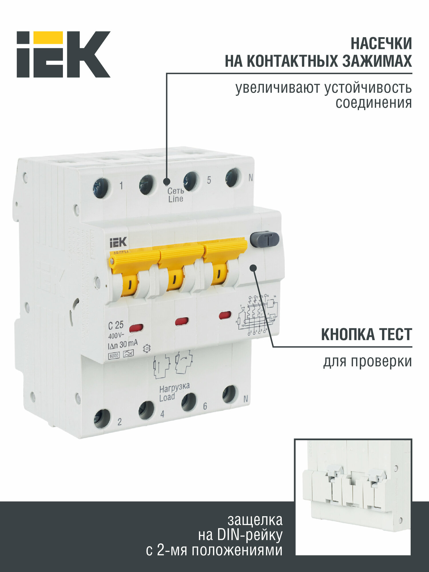 Дифференциальный автомат IEK АВДТ 34 (MAD22-6-025-C-30) 25A 30мА 6kA 4П (C)