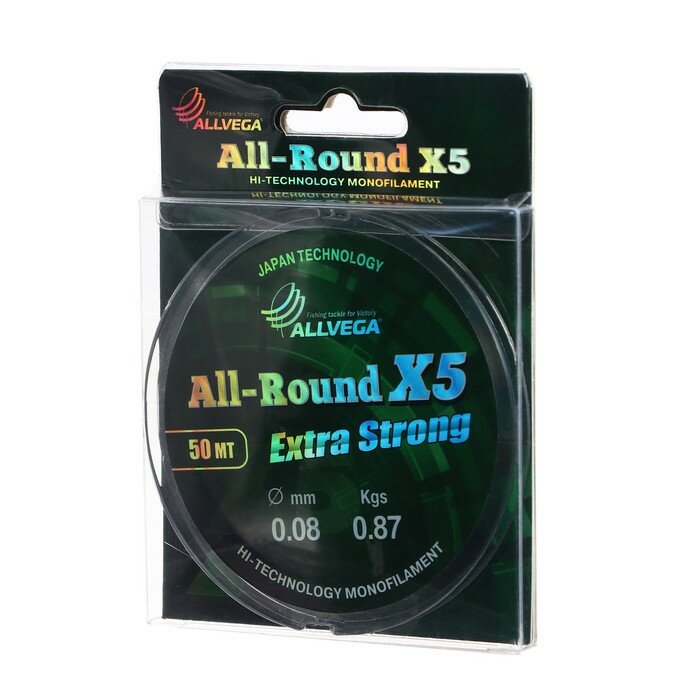 ALLVEGA Леска монофильная ALLVEGA All-Round X5, диаметр 0.08 мм, тест 0.87 кг, 50 м, прозрачная