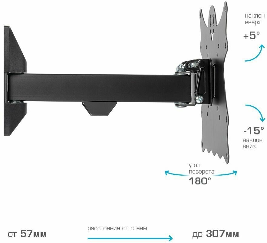 Кронштейн CASPER-203, для ТВ, наклонно-поворотный, 20-43", 57-307 мм от стены, черный 2 645 ₽