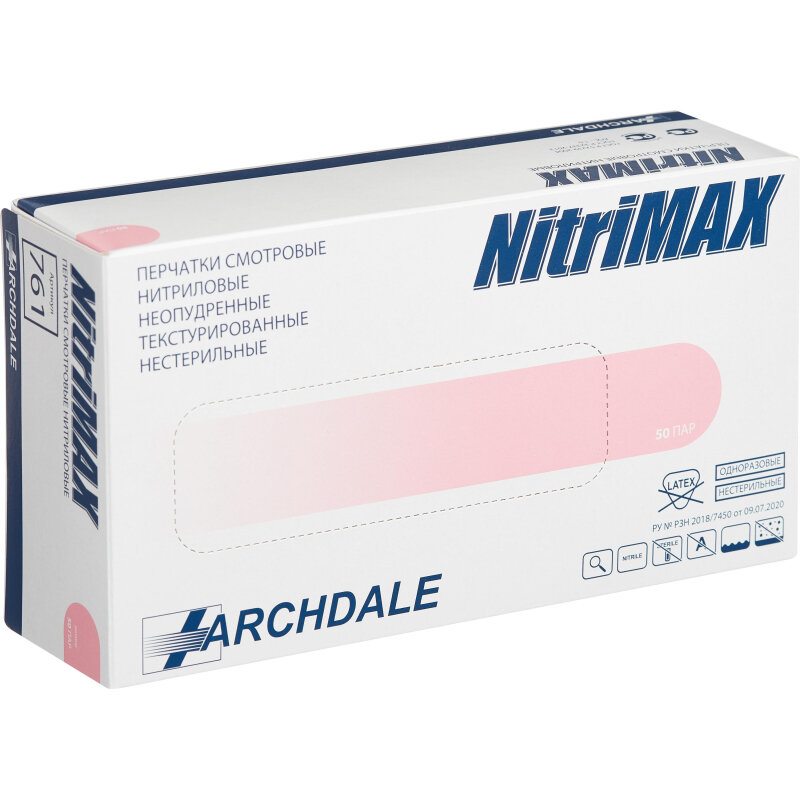 Перчатки Archdale NitriMAX, 50 пар, размер: XS, цвет: розовый, 1 уп.